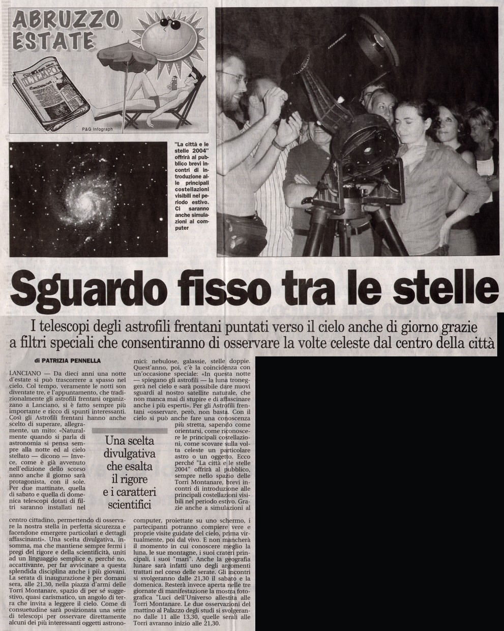 Giornata di divulgazione astronomica LA CITTA E LE STELLE ‘2004 – Il Cielo d’Inverno organizzata presso il palazzo degli Studi del corso Trento e Trieste a Lanciano(CH).